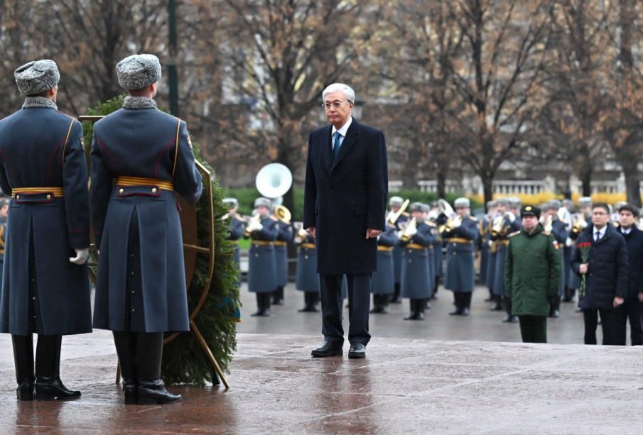 Қасым-Жомарт Тоқаевтың Ресей Федерациясына мемлекеттік сапарының екінші күні Александр бағындағы «Белгісіз жауынгер бейіті» мемориалына гүл шоғын қою рәсімінен басталды.