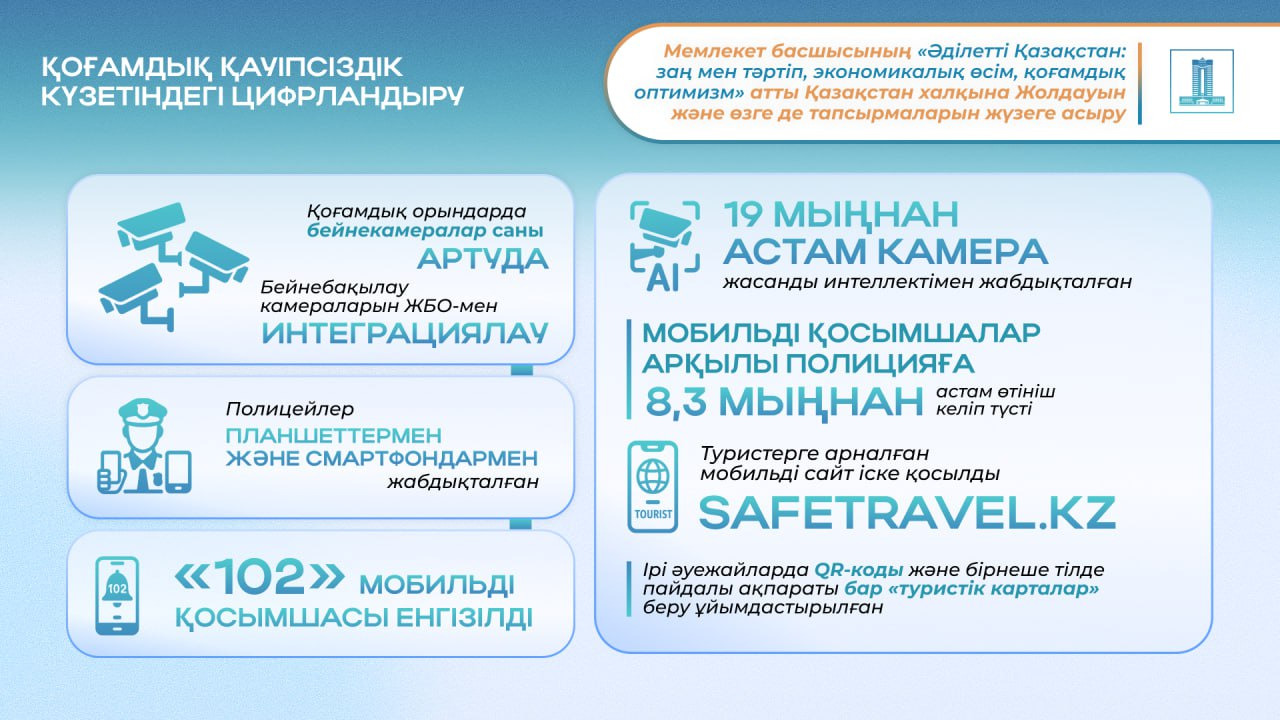 Мемлекет басшысы Қасым-Жомарт Тоқаевтың «Әділетті Қазақстан: заң мен тәртіп, экономикалық өсім, қоғамдық оптимизм» атты Қазақстан халқына Жолдауын және өзге де тапсырмаларын жүзеге асыру шеңберінде қоғамдық тәртіпті қамтамасыз ету саласына цифрлық технологияларды енгізуге ерекше көңіл бөлінуде.